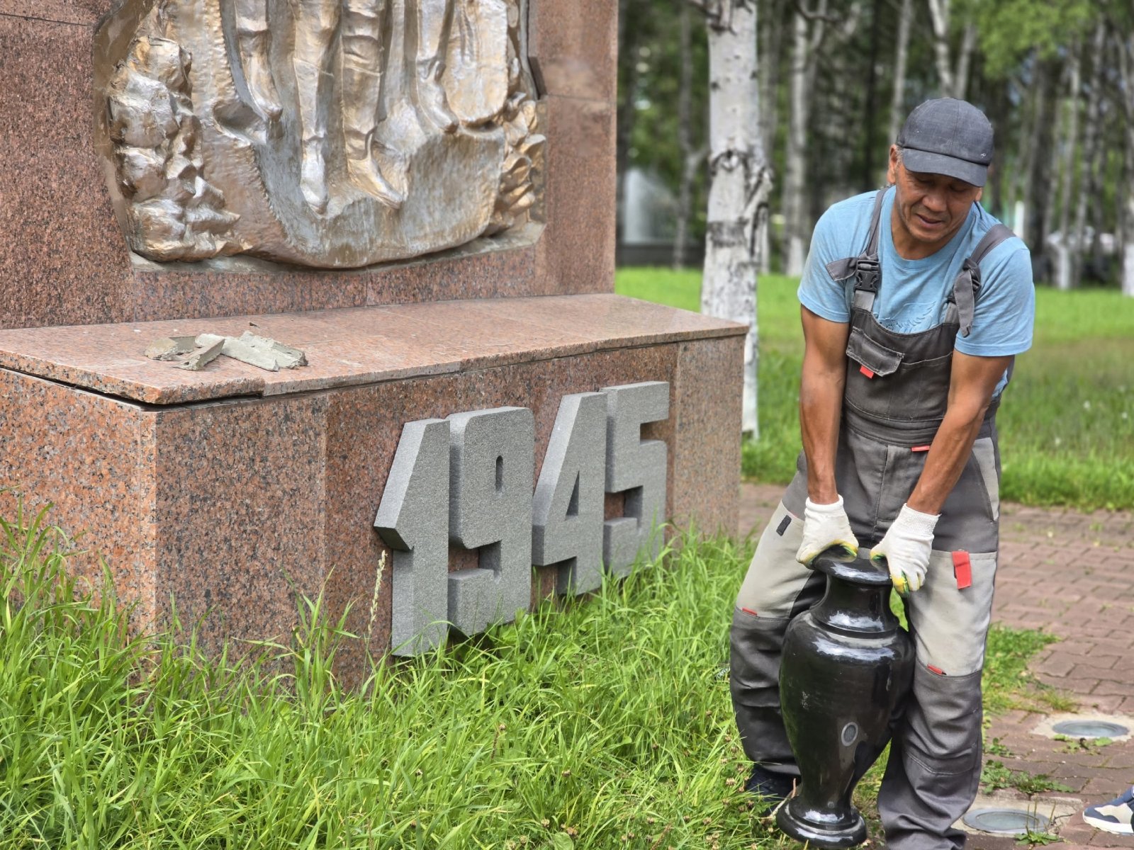 К этим памятным событиям у нас прошла важная работа по реконструкции мемориала «Тыл – фронту». Подрядчик заменил гранитные плиты на более современные, также установлены новые декоративные вазоны, подставка под венок.