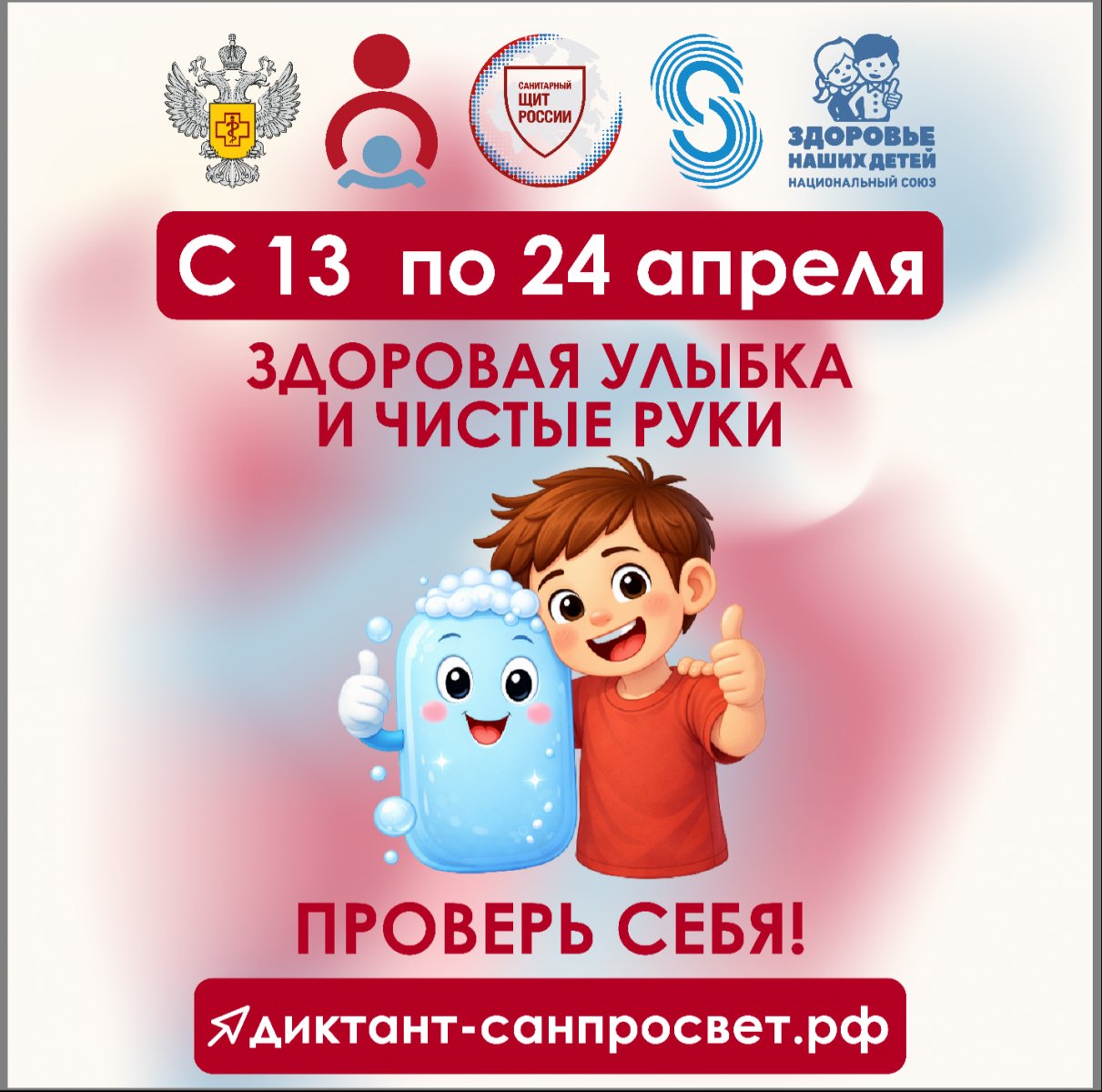 13.04.2026 Стартует первый этап Всероссийской акции «Диктант здоровья»: проверяем знания о гигиене полости рта и чистых руках